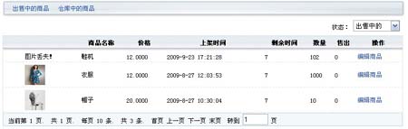 如果你從登錄的頁(yè)面輸入了您自己的正確的用戶名和密碼,然后就可以進(jìn)入到您的旺鋪后臺(tái)。在您成功進(jìn)入后,點(diǎn)擊左邊的導(dǎo)航條中的產(chǎn)品信息下的出售中的產(chǎn)品(如下圖)。打開(kāi)后您就會(huì)看到出售中商品的列表。 |