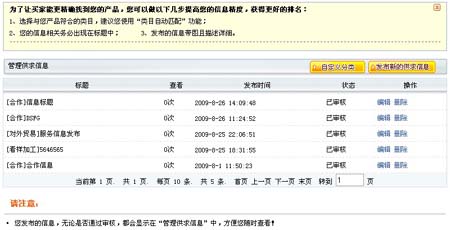 首先請(qǐng)您登錄到旺鋪的后臺(tái),在您成功進(jìn)入后,請(qǐng)您找一下左邊導(dǎo)航中的供應(yīng)信息欄目下的管理供應(yīng)信息子欄目。點(diǎn)擊此欄目,您就可以查看您已經(jīng)查過(guò)的供應(yīng)信息(如下圖)。 |