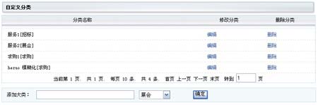 首先請(qǐng)您登錄到旺鋪的后臺(tái),在您成功進(jìn)入后,請(qǐng)您找一下左邊導(dǎo)航中的供應(yīng)信息欄目下的自定義分類子欄目。點(diǎn)擊此欄目,您就可以對(duì)所有分類進(jìn)行操作了(如下圖)。 |