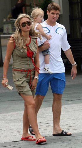 杰拉德和阿萊克斯一家三口出門當(dāng)然會引來狗仔跟拍,作為太太的阿萊克斯時尚裝扮不打折扣,雖然照片的時間不算很近,但這件連身的工裝短褲在現(xiàn)在看來依然是主流單品,露出的星星點點的紅色,紅腰帶、紅打底背心以及紅色人字拖,對比中又起到了呼應(yīng)作用,看過一眼就很難忘記。